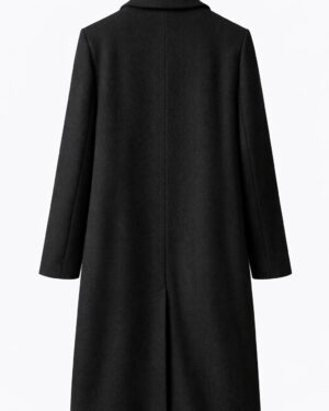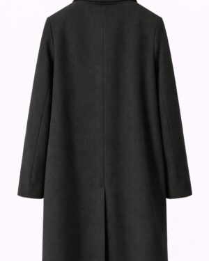 Dámsky čierny vlnený elegantný kabát – veľkosť 48
