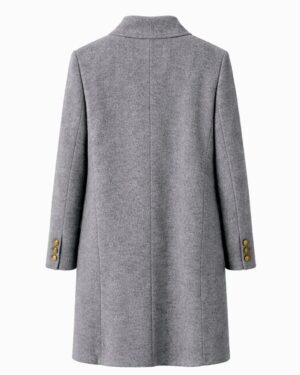 Dámsky sivý vlnený kabát so stojáčikom a zlatými gombíkmi