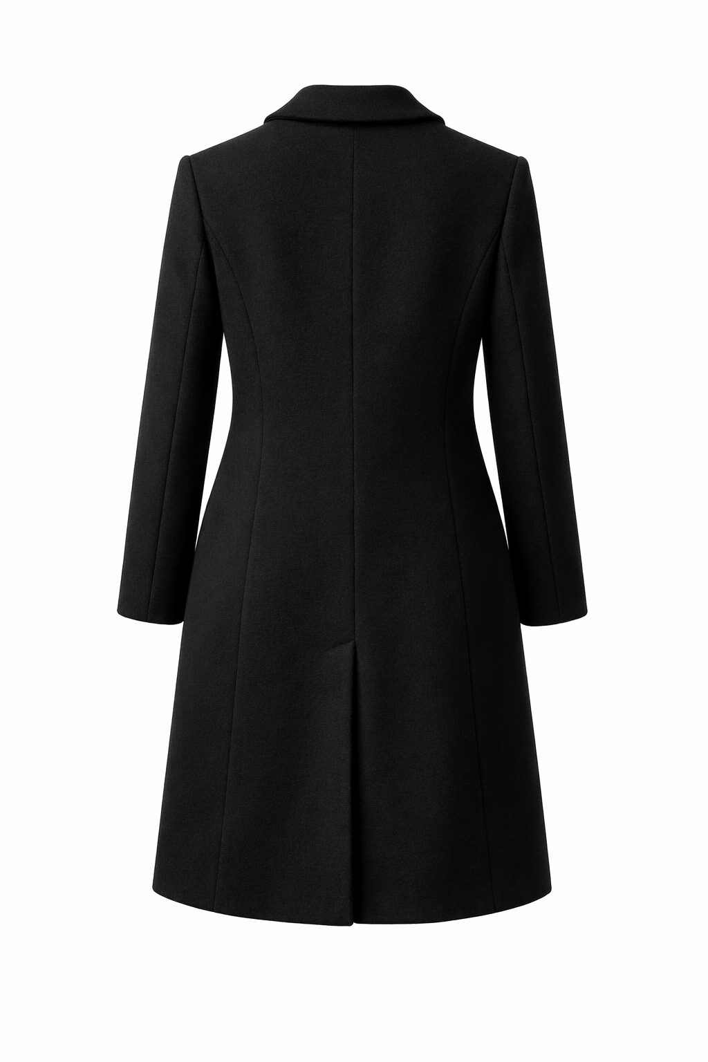 Dámsky čierny vlnený elegantný kabát – veľkosť 48