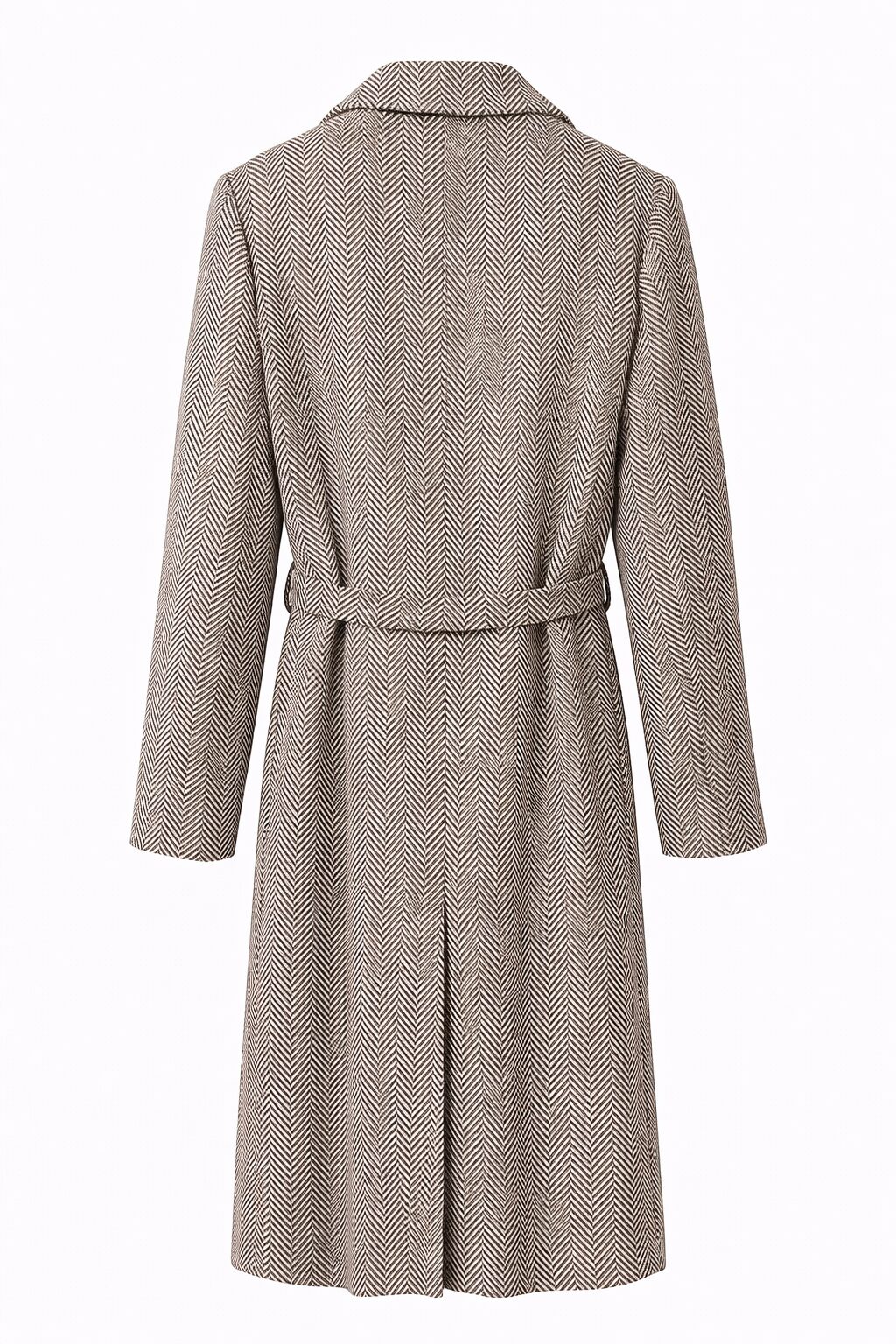 dámsky hnedý kabát so vzorom rybia kosť