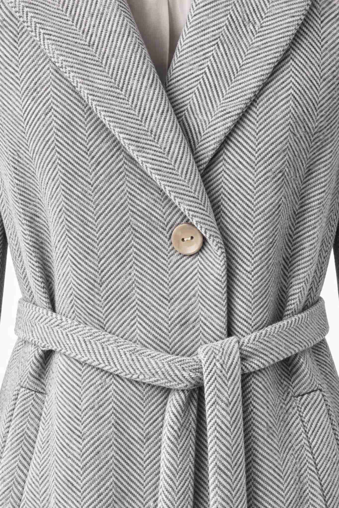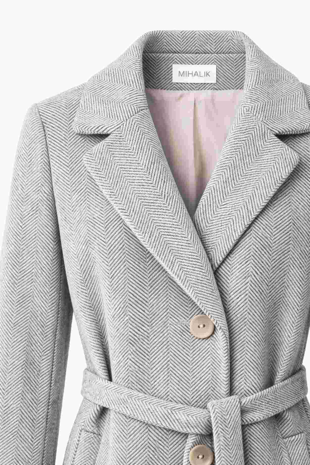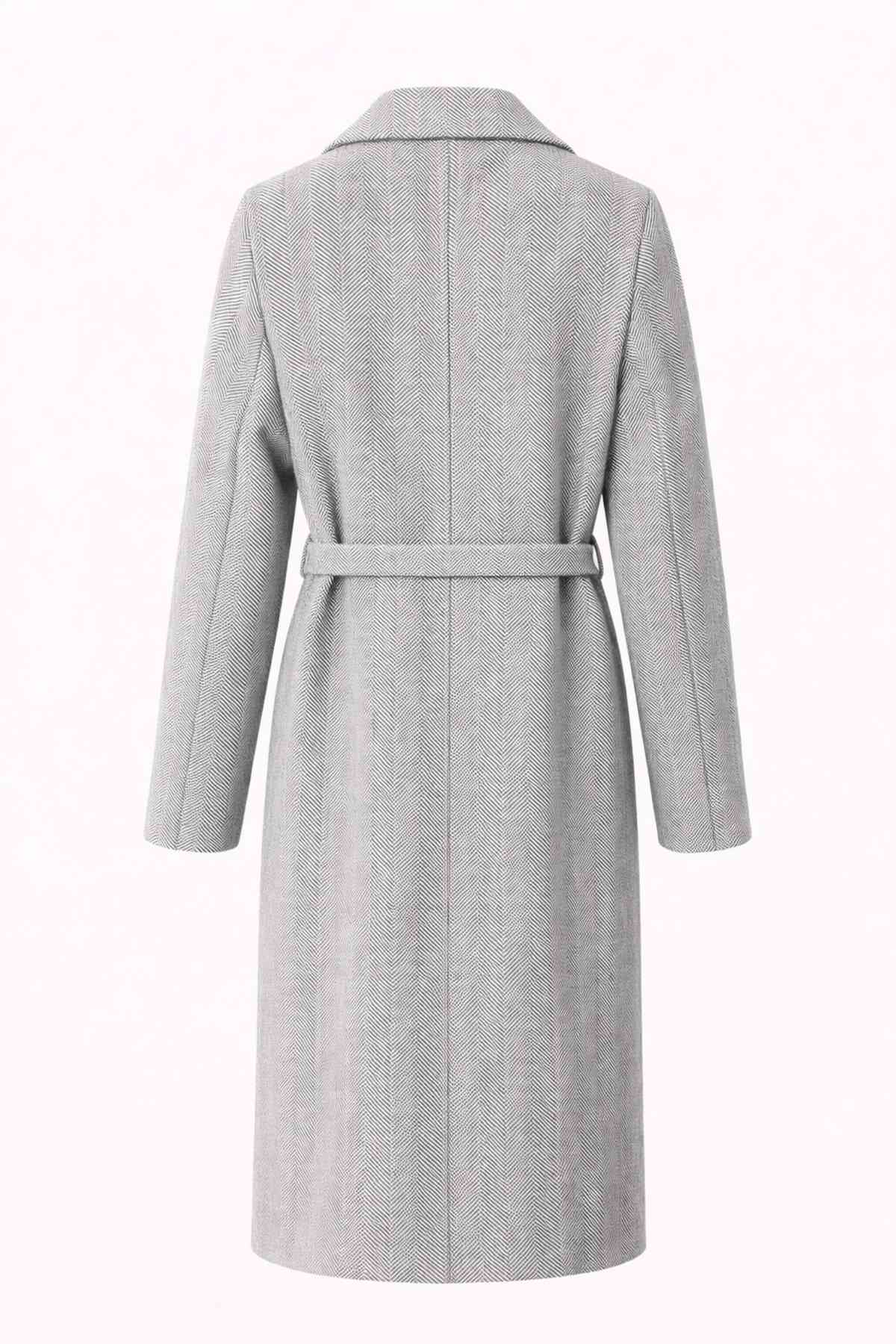 Klasický strih so zapínaním na gombíky dopĺňa viazanie v páse. Vďaka opasku si siluetu jednoducho prispôsobíte podľa potreby. Kabát tak poskytuje nielen štýl, ale aj pohodlie počas celého dňa.