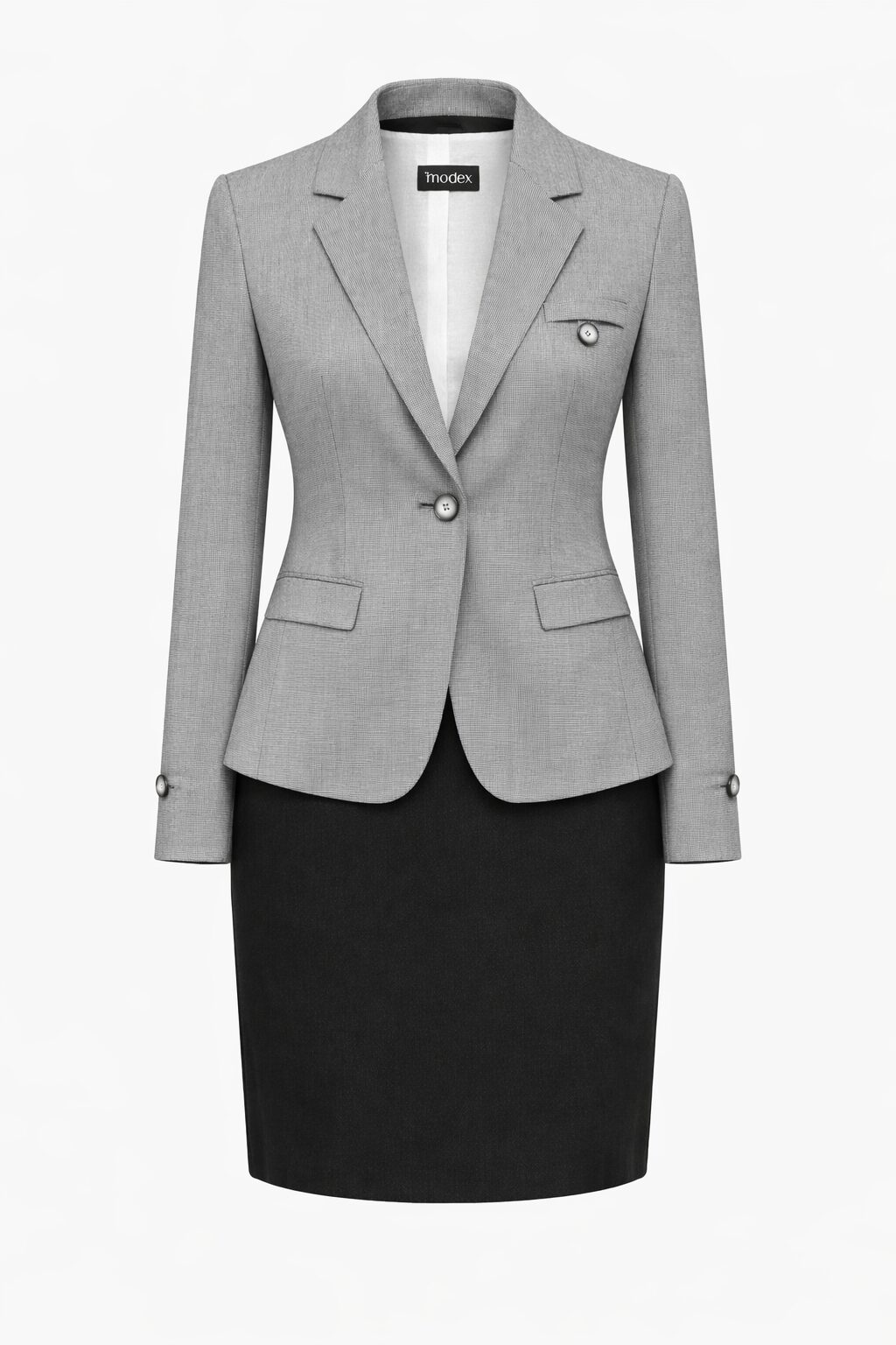 Tento dámsky kostým so sukňou značky Modex predstavuje ideálnu voľbu pre ženy, ktoré chcú pôsobiť profesionálne, elegantne a zároveň žensky. Kombinácia čiernej sukne a svetlého saka s jemným vzorom vytvára nadčasový kontrast, ktorý nikdy nevyjde z módy. Navyše tento farebný základ jednoducho skombinujete s rôznymi doplnkami, takže kostým využijete počas celého roka. Hodí sa nielen do práce, ale aj na obchodné stretnutia či formálnejšie spoločenské udalosti.