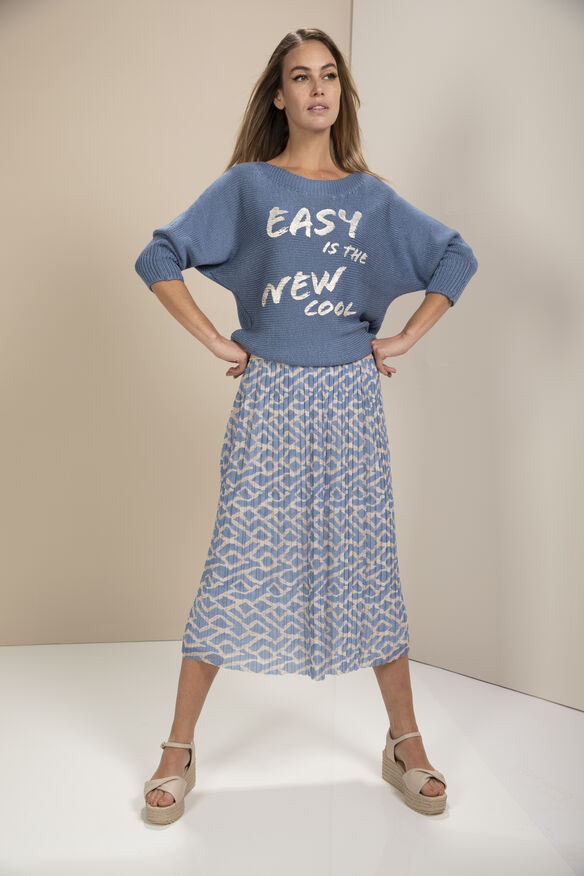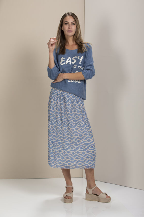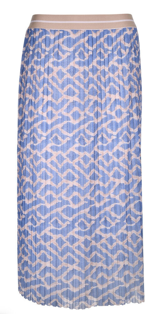 Modrá plisovaná sukňa KennyS – midi sukňa s grafickým vzorom